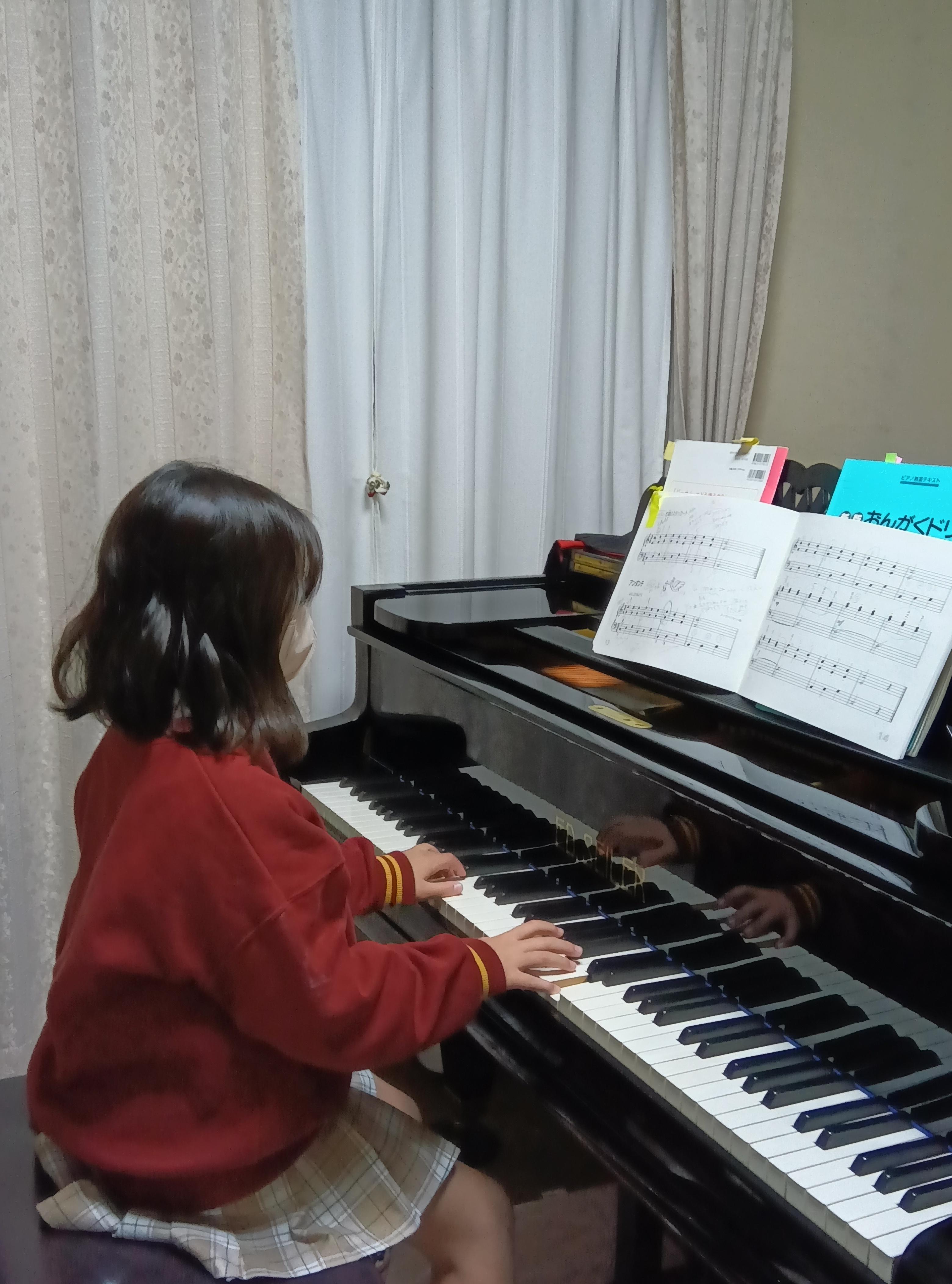 小学5年生Aさん、3月の合同発表会に向けて、ソロと連弾の練習を頑張っています。